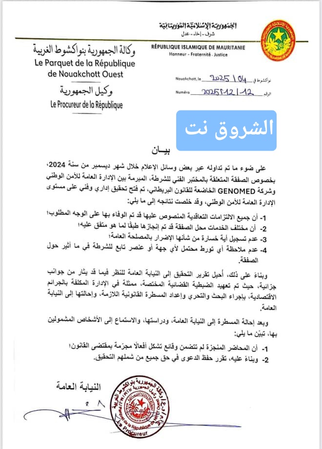 تبرئة سيدي ولد ديدي وأحمد ولد الشيخ في ملف مختبر الشرطة..(بيان)
