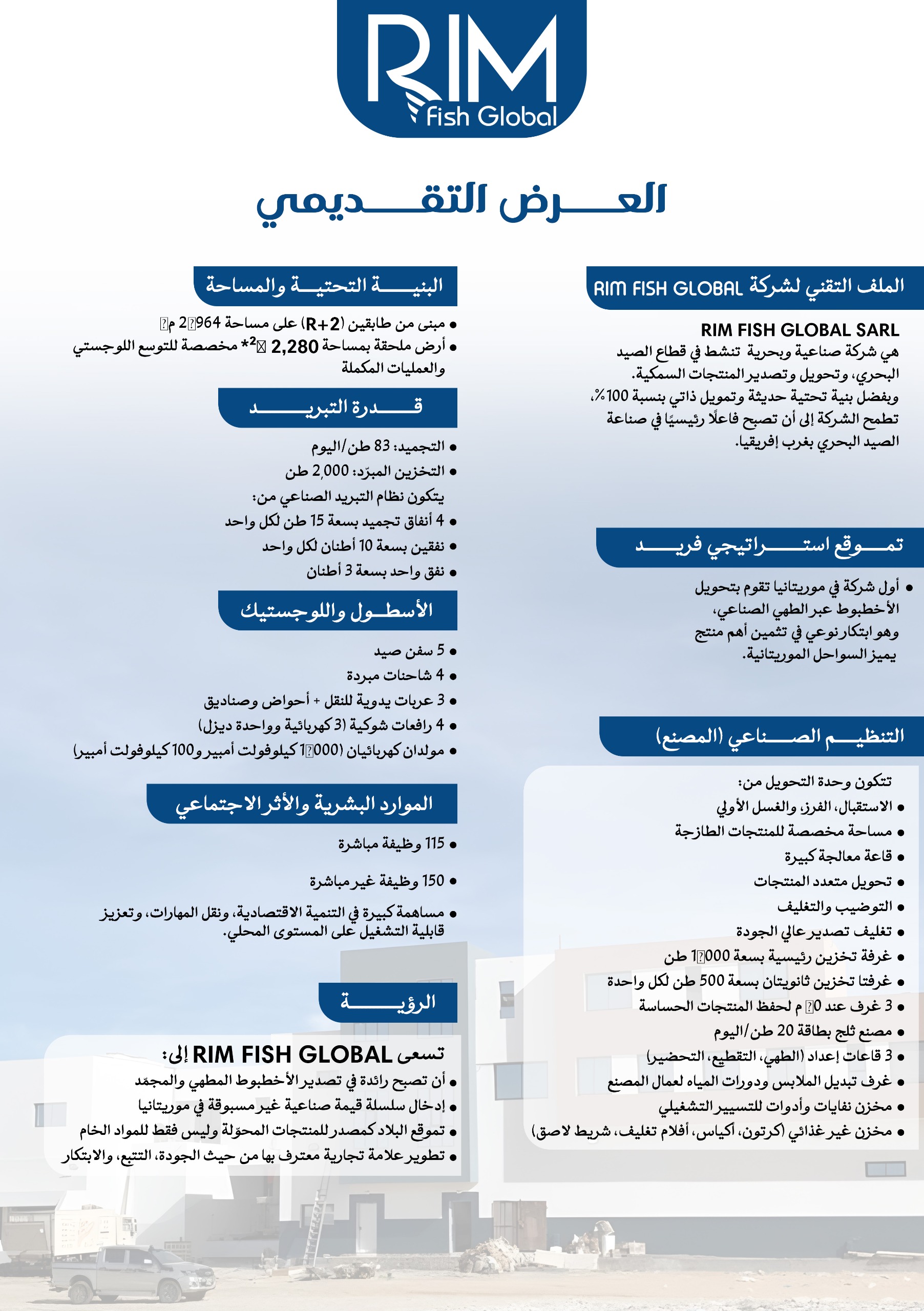 وفي تصريح بالمناسبة، أكد الرئيس المدير العام للشركة، السيد يعقوب ولد بتيري، أن RIM FISH GLOBAL تسعى إلى:
