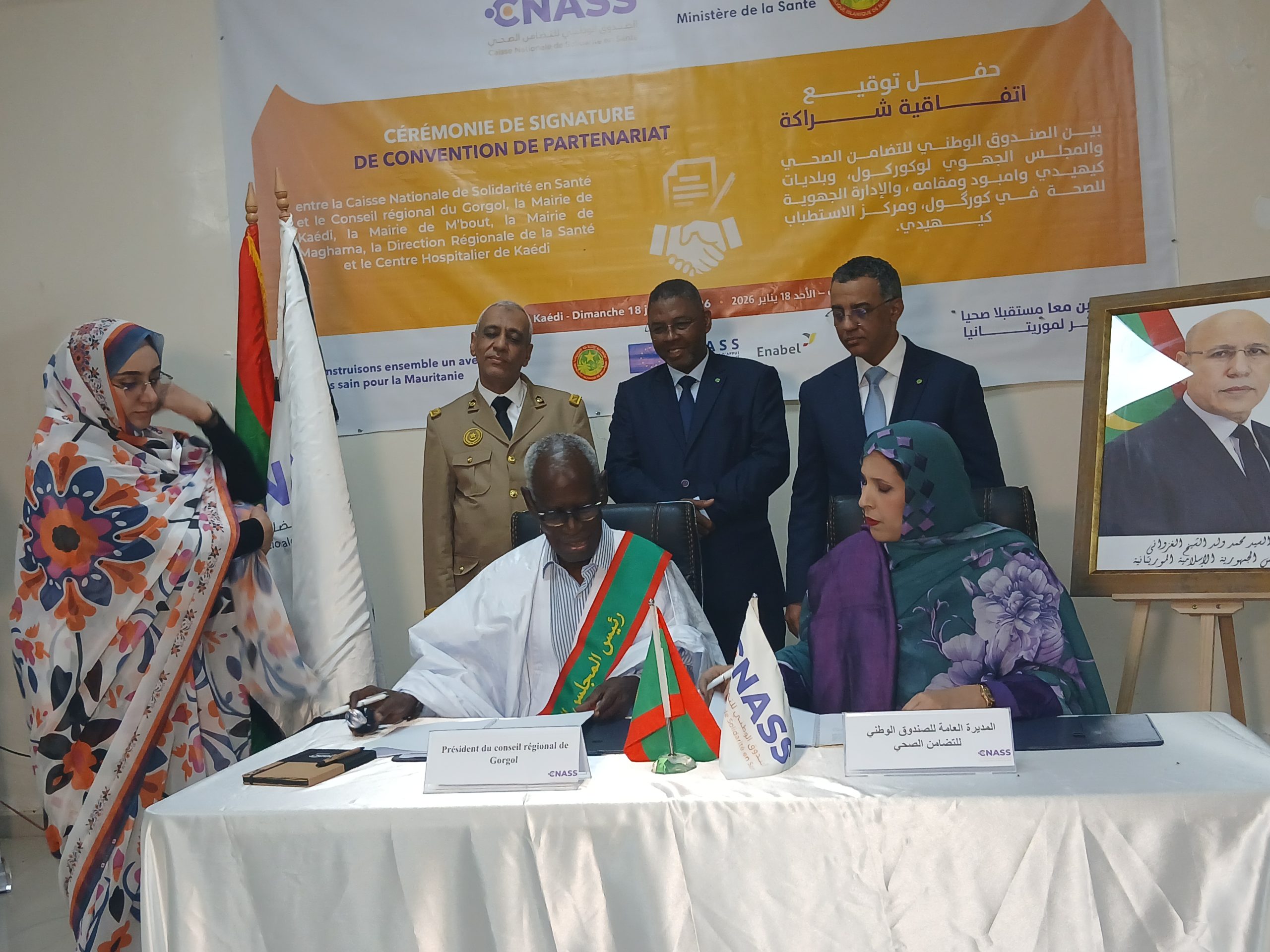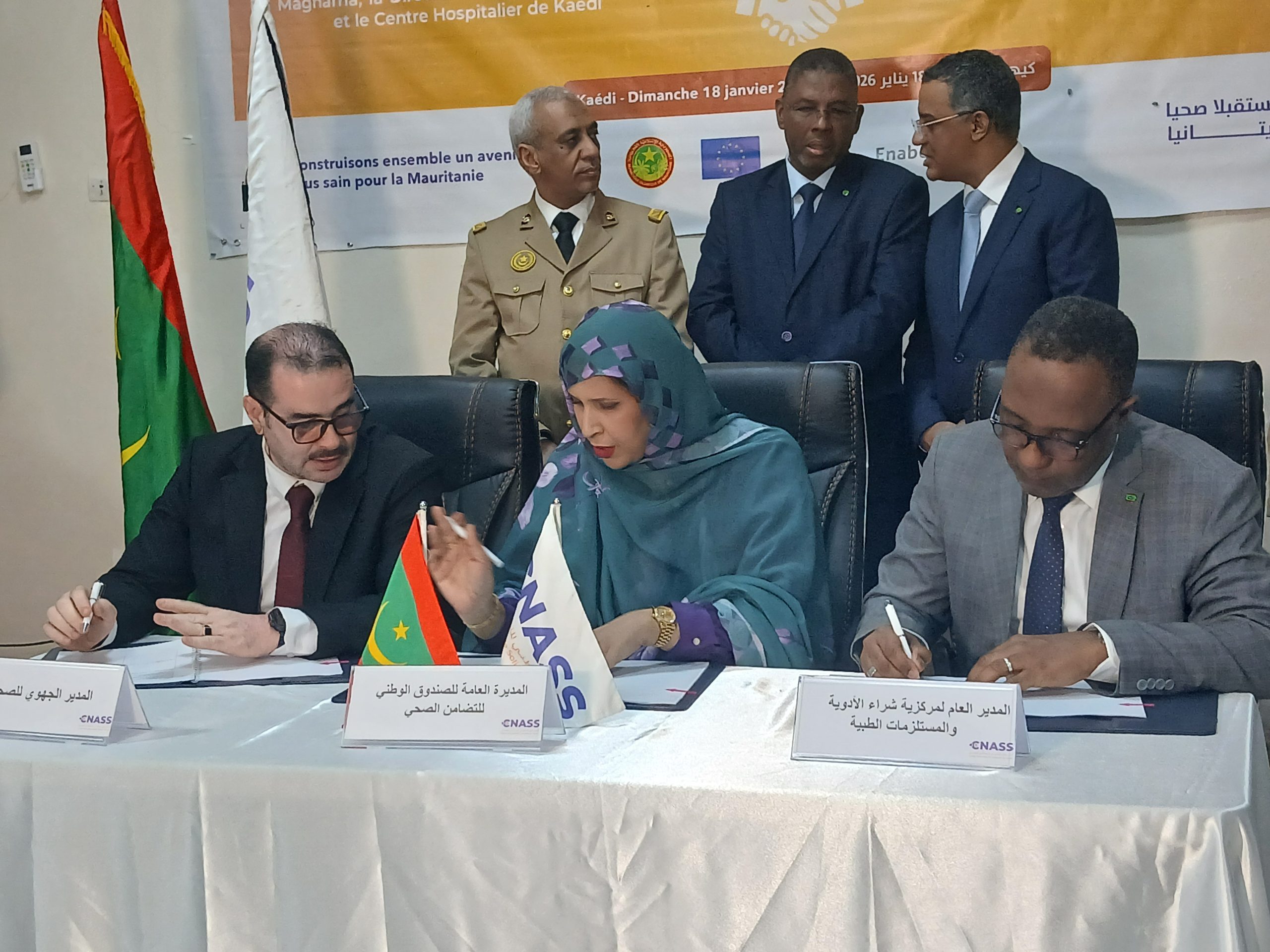 الشروق نت (كيهيدي ) – أشرف وزير الصحة محمد محمود ولد أعل محمود، رفقة الوزير المنتدب لدى وزير الداخلية وترقية اللامركزية والتنمية المحلية، المكلف باللامركزية والتنمية المحلية، يعقوب ولد سالم فال، اليوم الأحد بمدينة كيهيدي، على توقيع اتفاقيات شراكة بين الصندوق الوطني للتضامن الصحي “اكناس” وعدد من الشركاء المحليين في ولايتي كوركول ولعصابه، إيذانًا بالانطلاق الرسمي لأنشطة الصندوق في هاتين الولايتين.